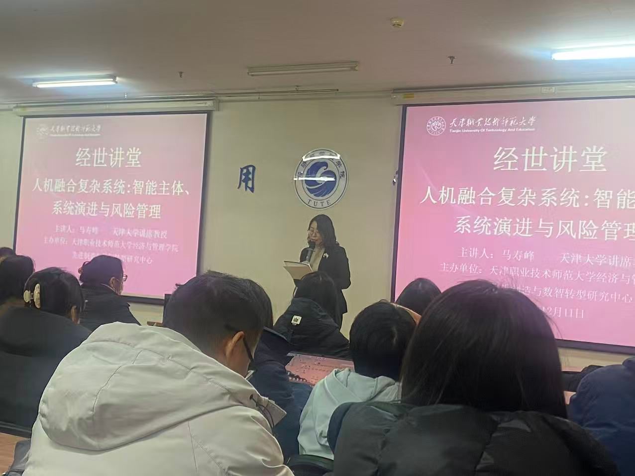 在第一教学楼701举办“经世讲堂”第十九讲。本次讲座以“人机融合复杂系统智能主体、系统演进与风险管理”为主题,特邀天津大学马寿峰教授担任主讲。院长齐莉丽、副院长董树功、副院长齐旭高、部分专任教师及研究生参会,会议由齐莉丽主持。