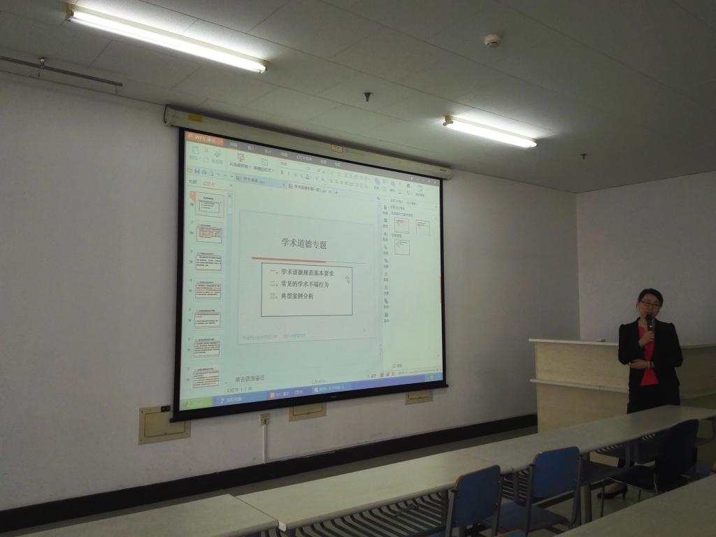 齐莉丽做了题为“学术道德专题”的讲座,通过论文写作中的学术道德基本要求、常见的学术不端行为和典型案例分析三个小标题做了详细阐释,从不同角度展示了学术不端学术界带来的不良影响,对个人的学术生涯带来的严重后果,要求经管学院15级、16级研究生务必遵守学术道德,求真守真,务实创新,责任担当,协同合作。