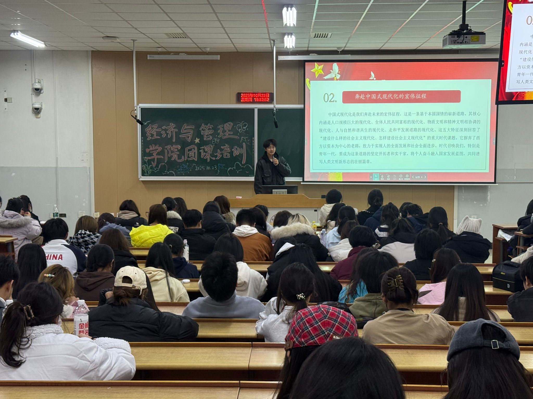 10月21日,武培培以“职业教育的百年变迁与时代担当”为题,带领团员回溯我国职业教育发展历程,深刻解读其在不同历史时期服务国家战略、赋能产业升级的核心价值,结合学校办学理念,阐释了学校扎根职教沃土、培育技能人才的初心使命和历史积淀。她引导入团积极分子努力学习专业知识,与国家职业教育发展同向同行,树立远大志向,以精湛技能筑牢强国根基,用青春担当书写职教新篇。