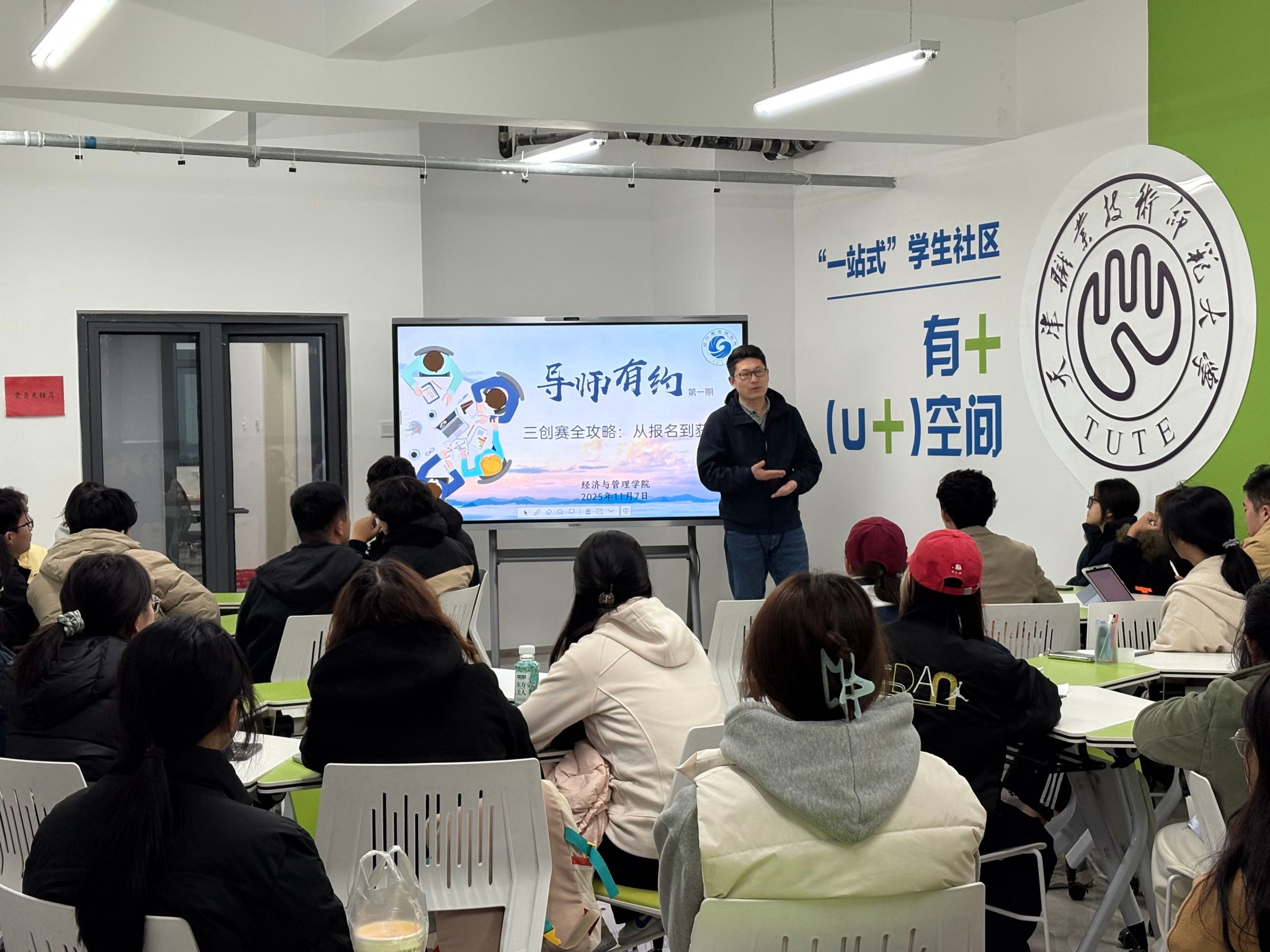 首场“导师有约”特邀电子商务系主任张波老师主讲,以“三创赛全攻略:从报名到获奖”为题,在“一站式”U+空间开讲。全国大学生电子商务“创新、创意及创业”挑战赛(简称“三创赛”)是该领域权威赛事,是学生锤炼双创能力、积累核心竞赛经历的关键平台。张波老师结合多年赛事指导经验,从三创赛赛事全景、第十六届报名时间轴、跨学科组队技巧,到备赛中的“选题三角模型”“商业计划书撰写要点”“路演答辩高频问题应对”等核心内容,全方位拆解“从报名到获奖”的关键路径,为有意参赛的同学们送上“通关秘籍”。
