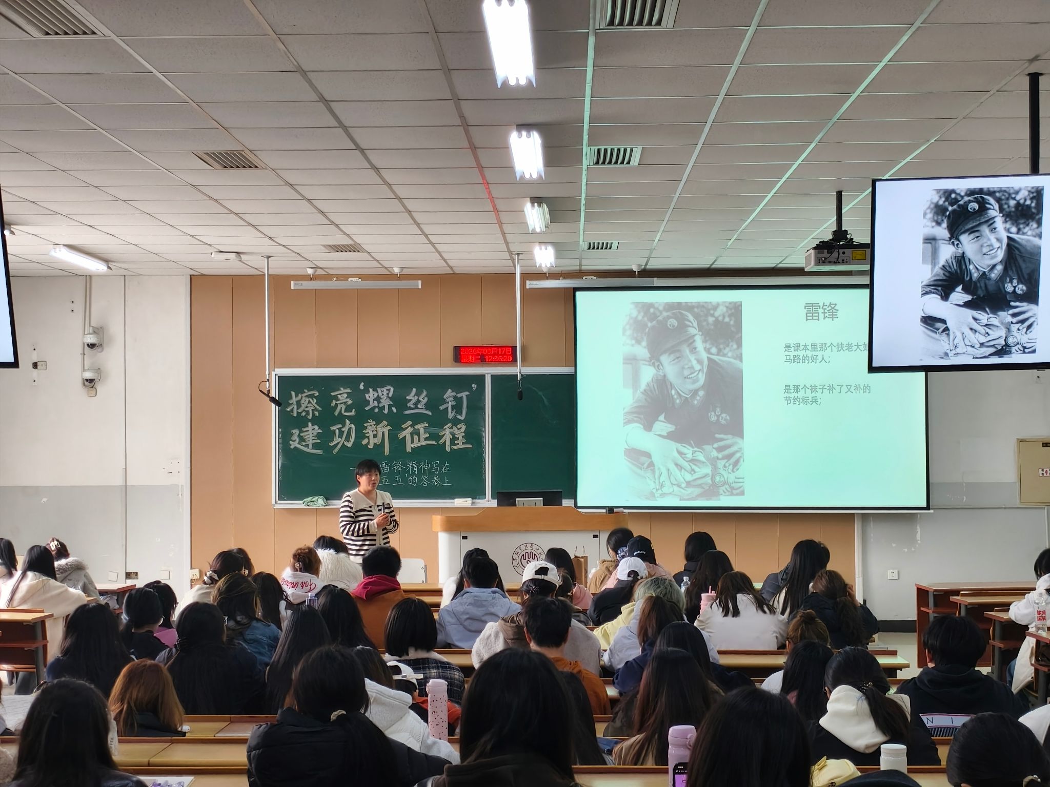 在第三教学楼104教室开展“擦亮螺丝钉,建功新征程,把雷锋精神写在‘十五五’的答卷上”主题团课。马克思主义学院教师、滚球体育(中国)唯一官方网站