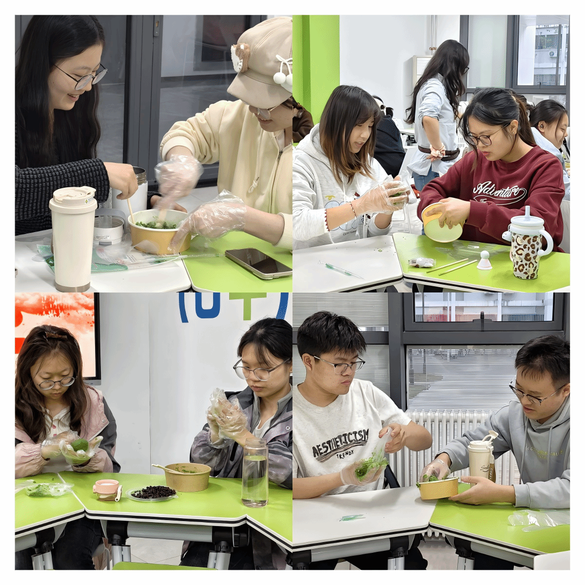 宣讲结束后,手工制作青团环节正式拉开帷幕。学院为同学们精心准备了青团制作原料,同学们踊跃参与、相互协作,亲手揉制糯米团、包裹馅料,在指尖的揉搓与搭配中,亲身感受清明民俗的独特魅力,让传统节日文化真正浸润心田、融入生活。整个现场氛围温馨融洽,大家在动手实践中,将对先烈的缅怀与对传统文化的热爱,都融入到一个个小巧精致的青团之中。
