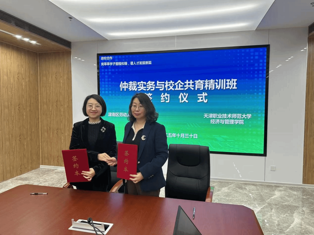 与仲裁院的合作,是校地协同的创新实践,既为学院人才培养拓宽了渠道,也为区域劳动人事争议化解工作注入了新活力。希望以签约为起点,进一步完善合作机制、拓展合作领域,在人才培养、课题研究、服务社会等方面实现互利共赢,共同推动津南区人力资源社会保障事业再上新台阶。