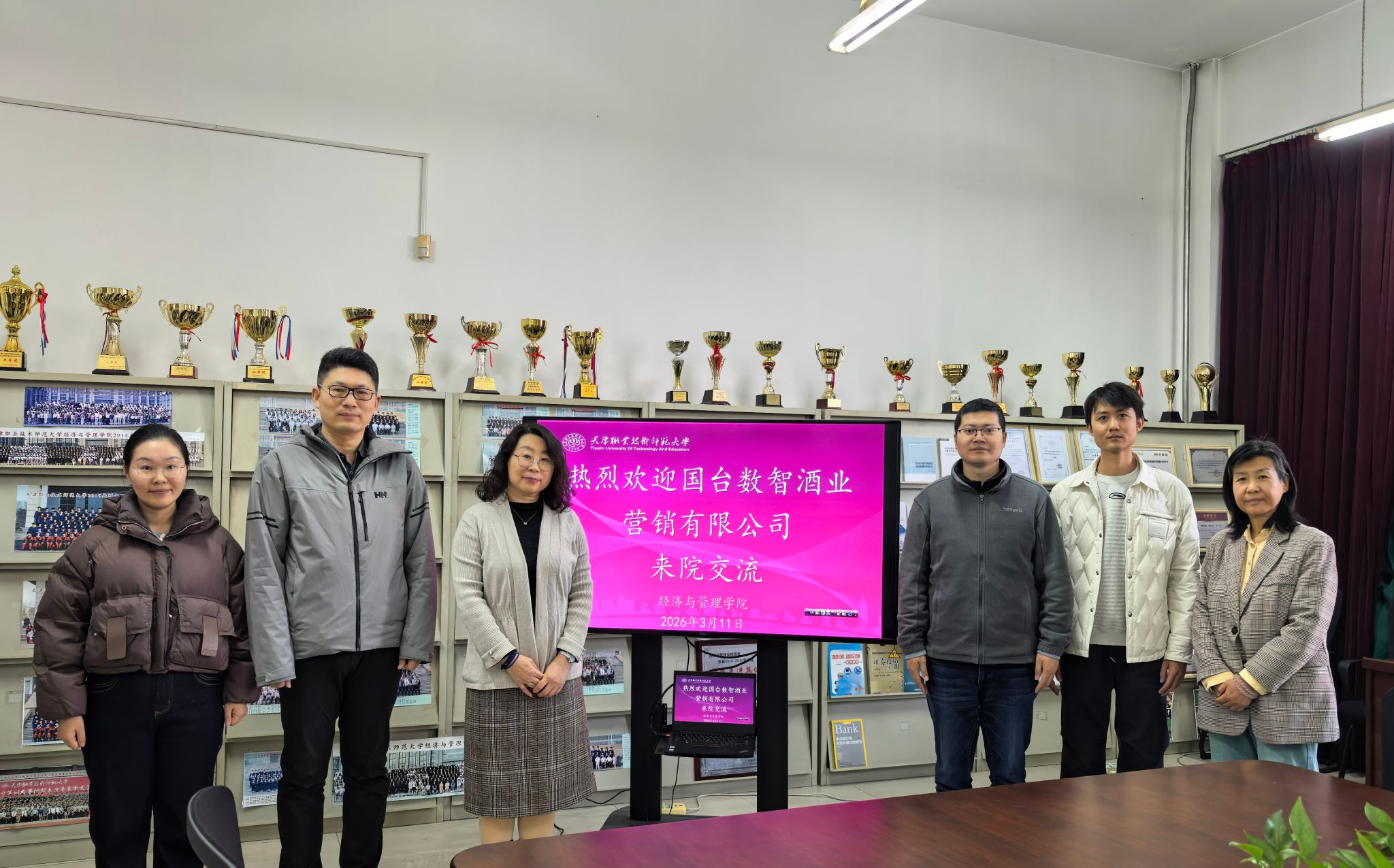与国台数智酒业有限公司开展交流座谈,双方就校企合作模式、人才培养、产学研融合等方面展开深入探讨。国台数智酒业有限公司电商总监赵平等、部门负责人孙兴邦、滚球体育(中国)唯一官方网站