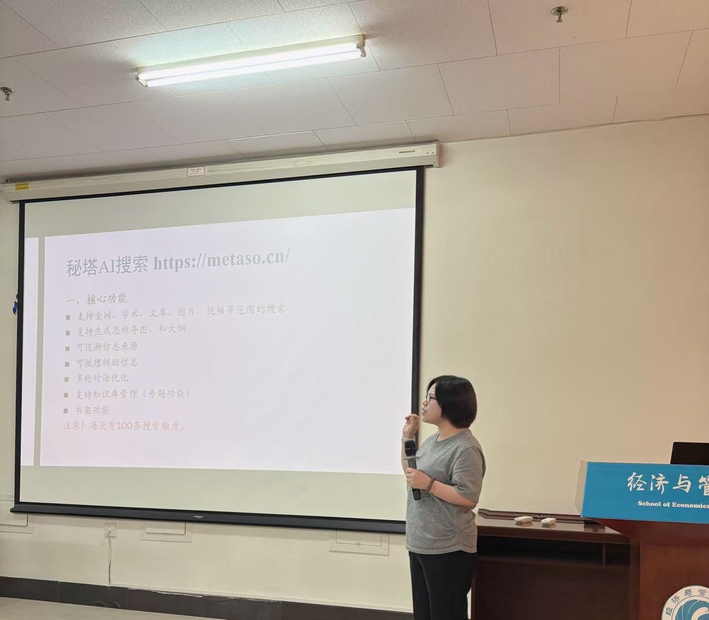 分享会上,郭悦红老师聚焦人工智能技术在教育教学中的创新应用,通过实际操作演示,展示了如何利用AI工具高效完成文献综述撰写、学术资料检索、数据分析等任务,并指出其在辅助教师备课、科研写作中的显著优势。